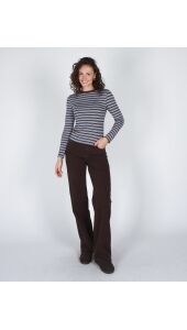 2 colours that go perfectly together: bruin en blauw! Deze toffe long sleeve heeft een gaaf streep patroon en is perfect te stylen op een wide leg bruine jeans. Combineer met matching accessoires en je bent ready for the day.
