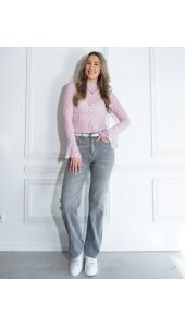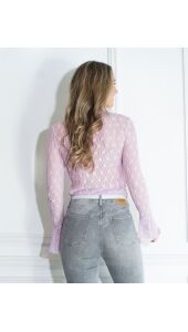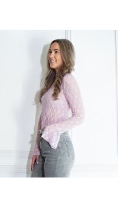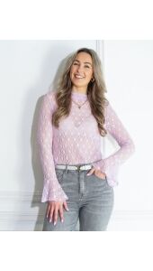 Deze kanten top met trompet mouw is een echte must-have! Gemaakt van nylon en spandex, voelt hij zacht en stretchy aan voor een comfy fit. Het verfijnde kantdesign voegt net dat beetje extra elegance toe aan je outfit. Perfect om te stylen met een mooie blazer of gewoon casual met je favoriete jeans.