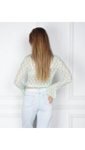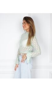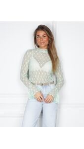 Deze kanten top met trompet mouw is een echte must-have! Gemaakt van nylon en spandex, voelt hij zacht en stretchy aan voor een comfy fit. Het verfijnde kantdesign voegt net dat beetje extra elegance toe aan je outfit. Perfect om te stylen met een mooie blazer of gewoon casual met je favoriete jeans.