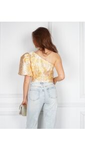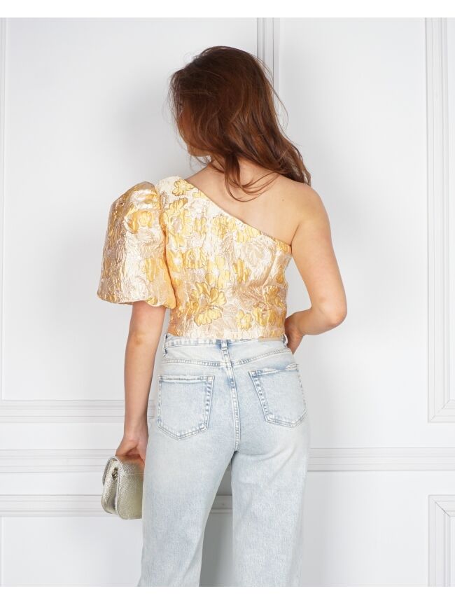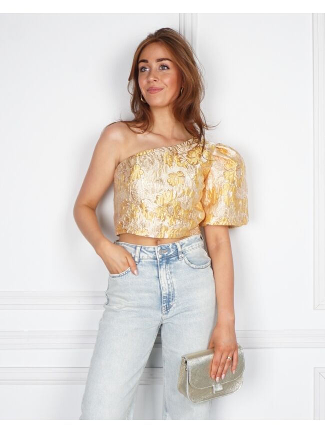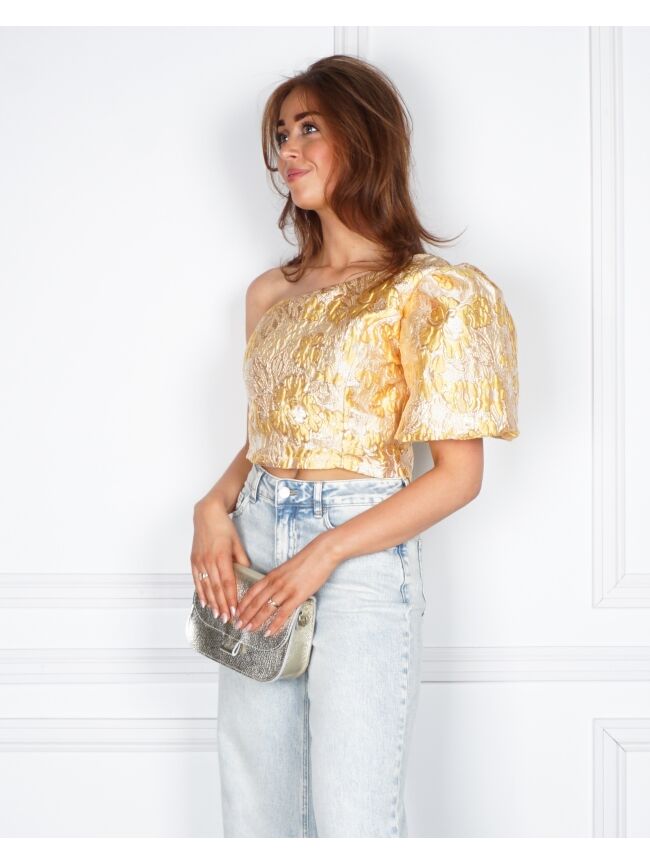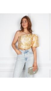 Deze one shoulder top is allesbehalve basic. Gemaakt van een rijke jacquardstof met een subtiel geweven patroon straalt hij klasse én karakter uit. De asymmetrische snit geeft een moderne, vrouwelijke touch. Dankzij de structuur van de jacquardstof valt de top mooi in model en is hij perfect voor feestelijke gelegenheden of een avondje uit. Combineer met een high-waisted pantalon of jeans voor een look die in balans is: gedurfd, maar verfijnd. We love it!