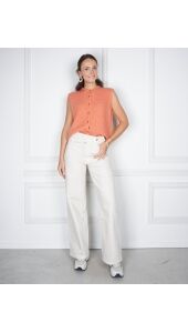 De spencer is terug en stijlvoller dan ooit. Dit mouwloze, gebreide vest geeft elke look een moderne edge. Draag ‘m over een crispy overhemd, een mesh top of op de blote huid voor een statement layering effect. De perfecte mix van cozy knitwear en high-fashion nonchalance.
