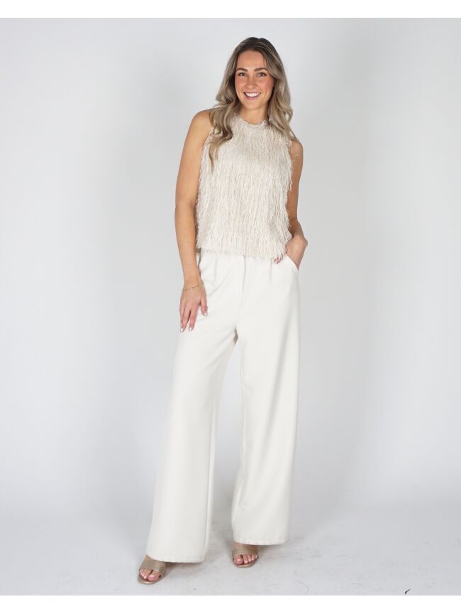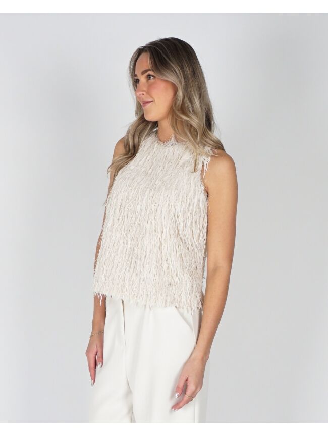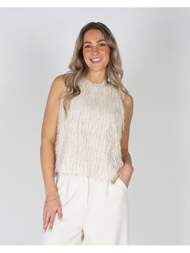 Deze Top Feather is gemaakt om op te vallen. De zachte veren langs de top geven een speelse, luxe uitstraling, terwijl de subtiele glitters voor een mooie, sprankelende glow zorgen zonder té heftig te zijn. De perfecte party top voor feestjes, etentjes en avonden waarop je net even extra wilt shinen.