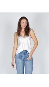 Deze sierlijke top is een fijne basic om in je garderobe te hebben. De bandjes zijn verstelbaar & het kant geeft de top net even iets extra's. Draag onder een jurkje of juist onder een blazer voor een casual look.