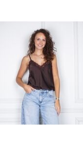 Deze sierlijke top is een fijne basic om in je garderobe te hebben. De bandjes zijn verstelbaar & het kant geeft de top net even iets extra's. Draag onder een jurkje of juist onder een blazer voor een casual look.