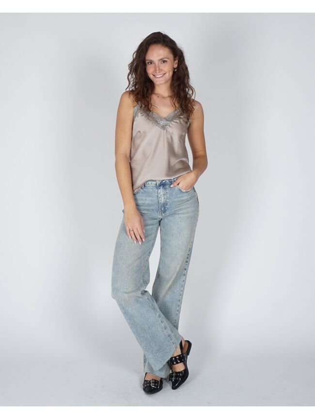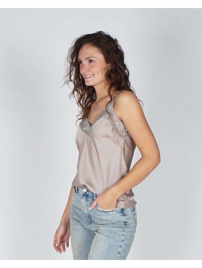 Deze sierlijke top is een fijne basic om in je garderobe te hebben. De bandjes zijn verstelbaar & het kant geeft de top net even iets extra's. Draag onder een jurkje of juist onder een blazer voor een casual look.