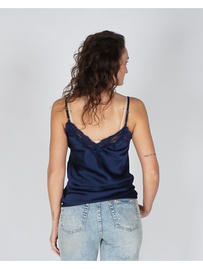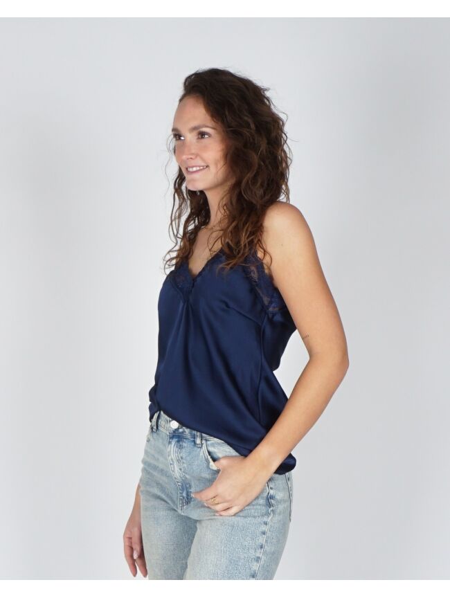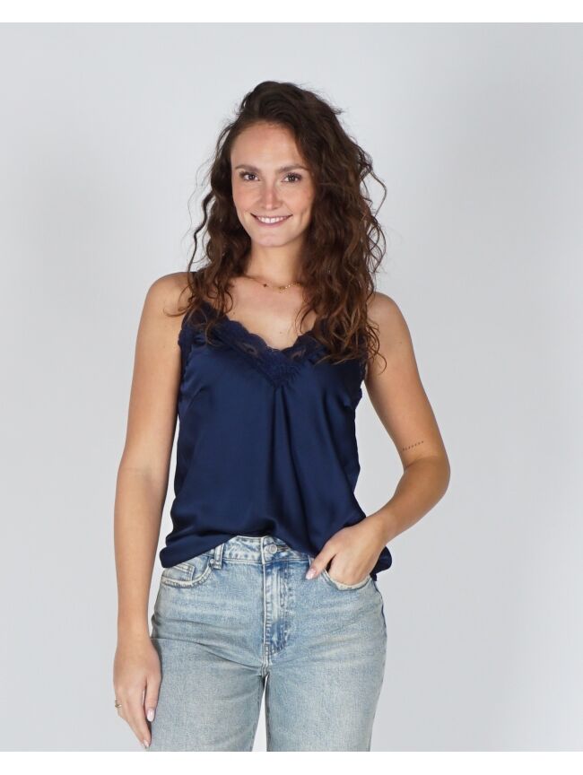 Deze sierlijke top is een fijne basic om in je garderobe te hebben. De bandjes zijn verstelbaar & het kant geeft de top net even iets extra's. Draag onder een jurkje of juist onder een blazer voor een casual look.