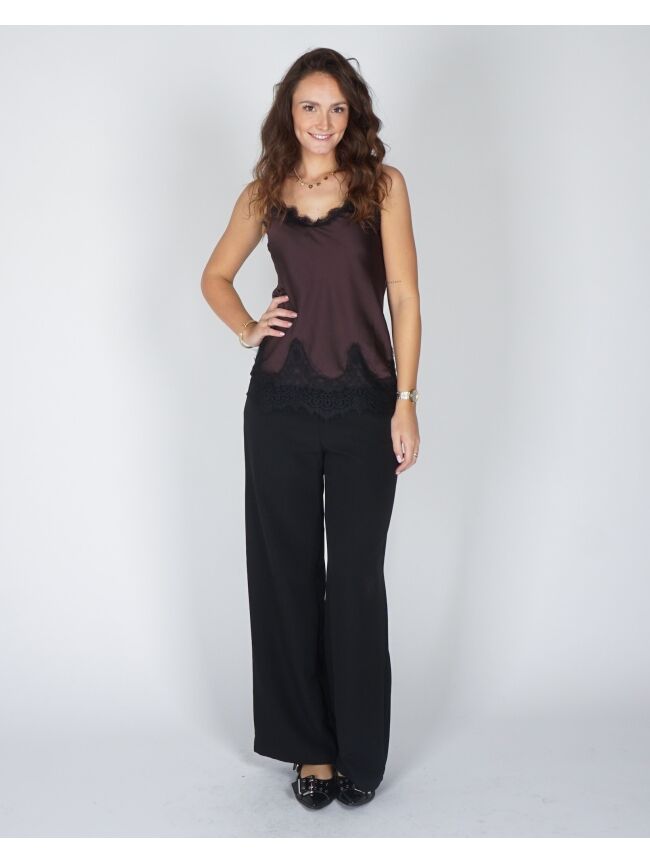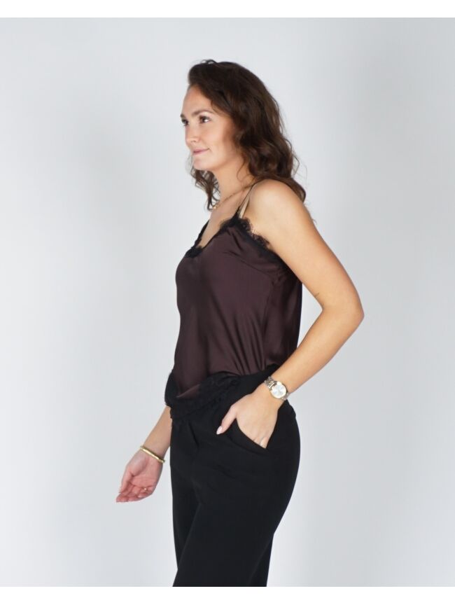 De Lynn top is een veelzijdig item dat niet mag ontbreken in je garderobe. Met fijne kanten details voor een vrouwelijke touch. Draag ‘m gemakkelijk onder een blouse als subtiel laagje, combineer ‘m onder een trui of blazer, of draag ‘m in de zomer los voor een stijlvolle en luchtige look.