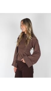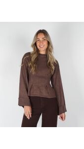 Trendalert! Deze prachtige getailleerde trui is echt een statement piece! De trui sluit aan in de taille, is hooggesloten en heeft wijde mouwen. Style op je favoriete jeans of pantalon.