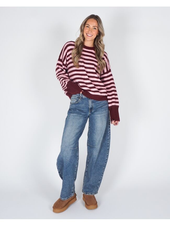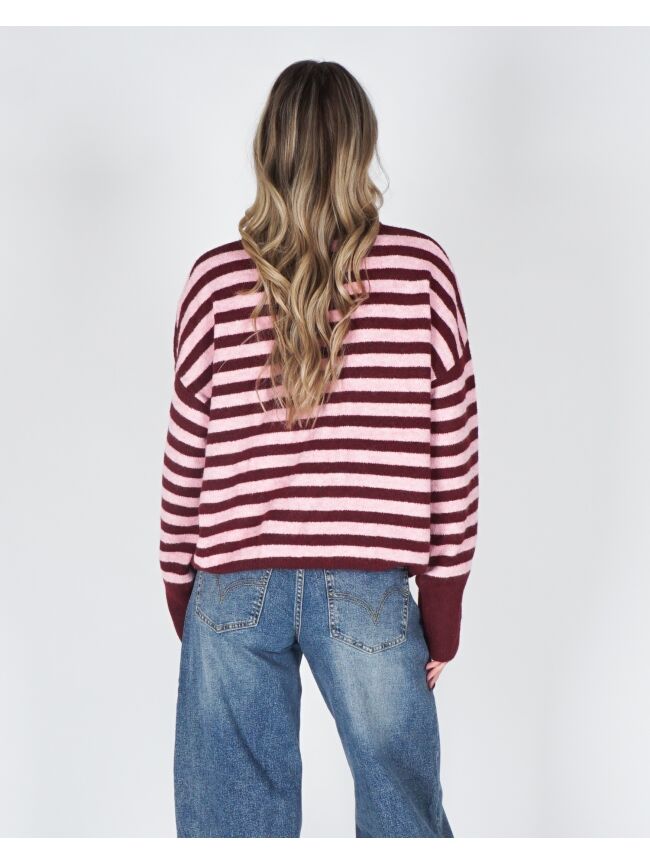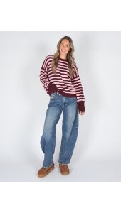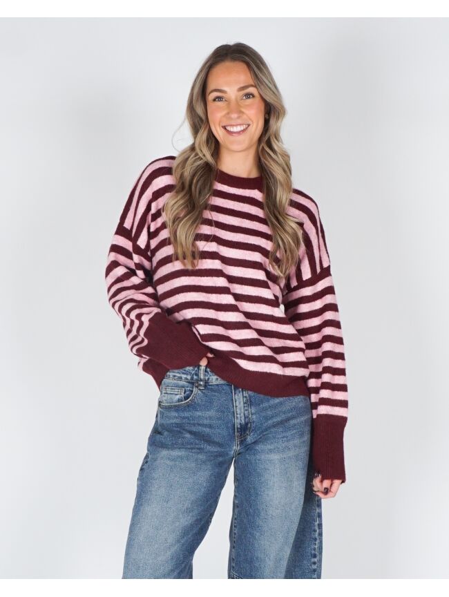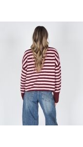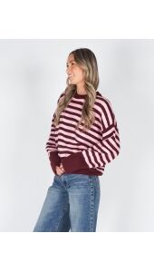 GESTREEPTE TRUI KIM BORDEAUX / ROZE