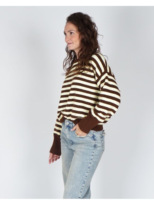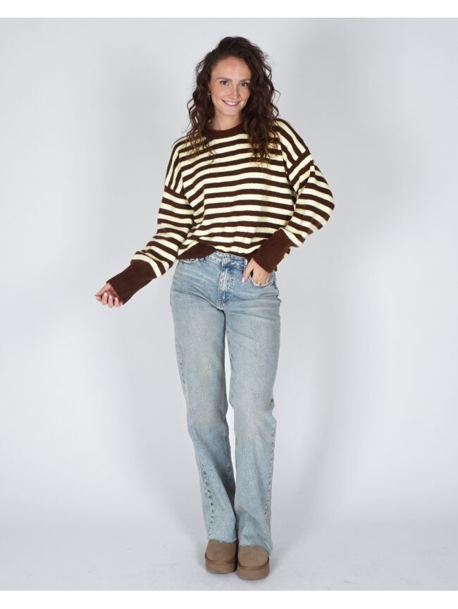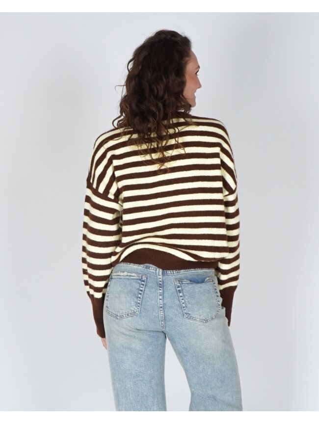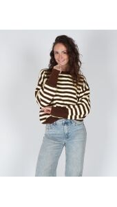 GESTREEPTE TRUI KIM BRUIN/GEEL