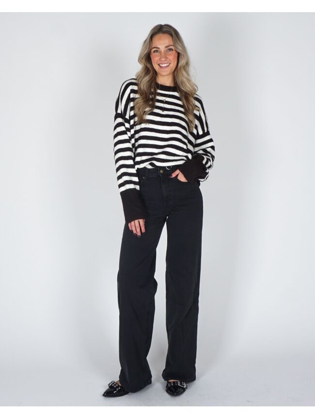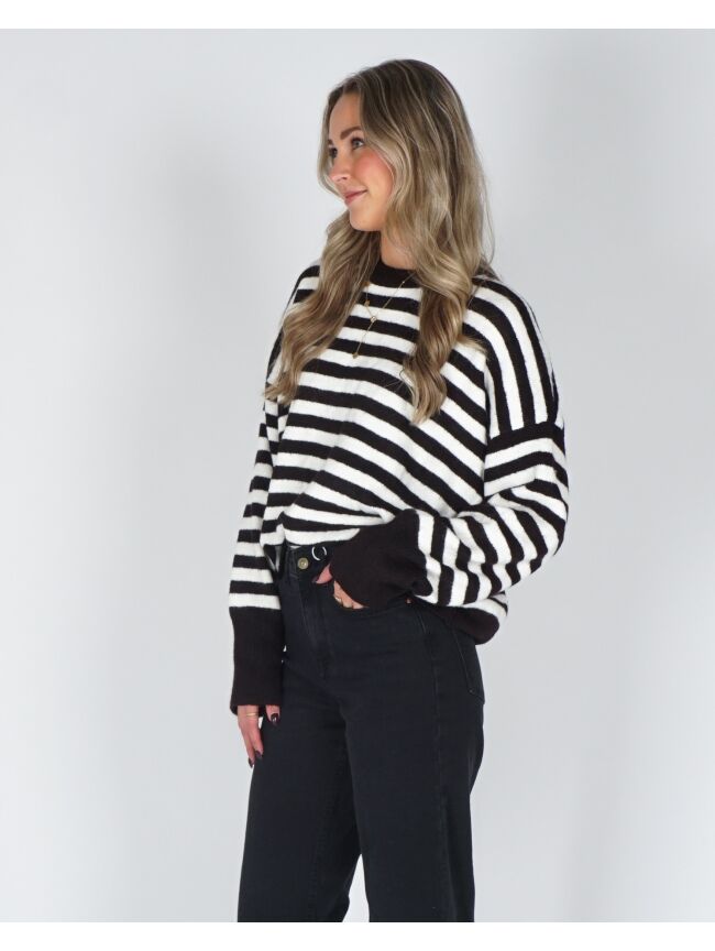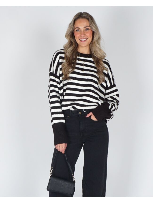 GESTREEPTE TRUI KIM DONKERBRUIN / WIT