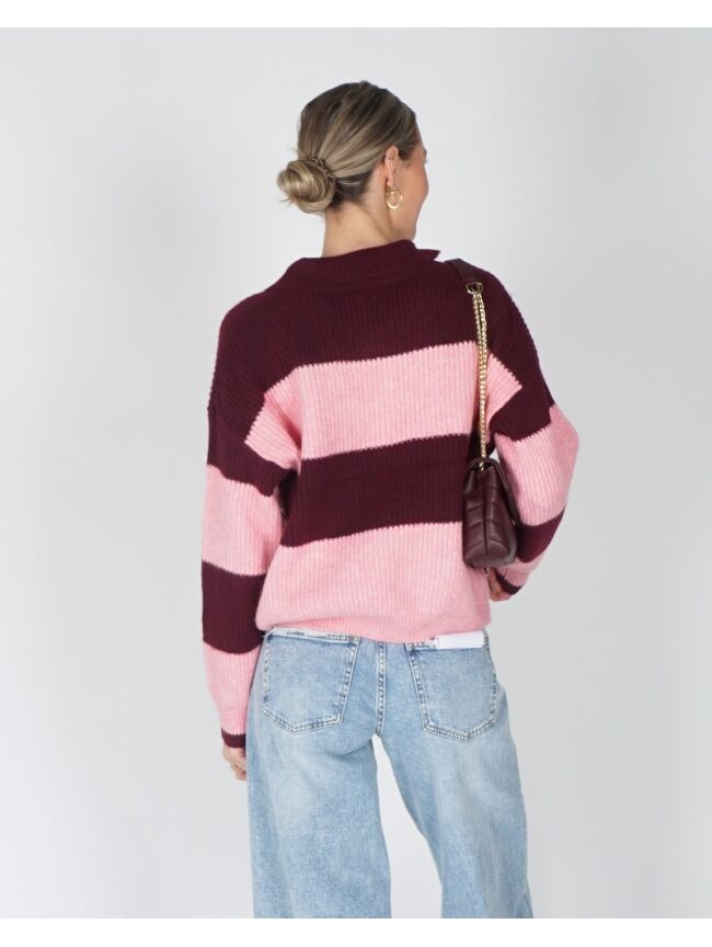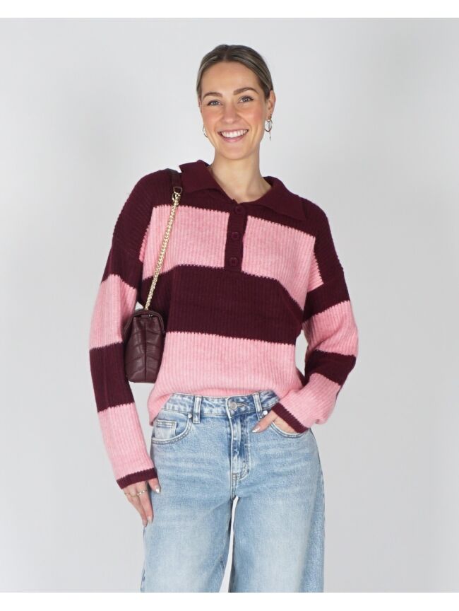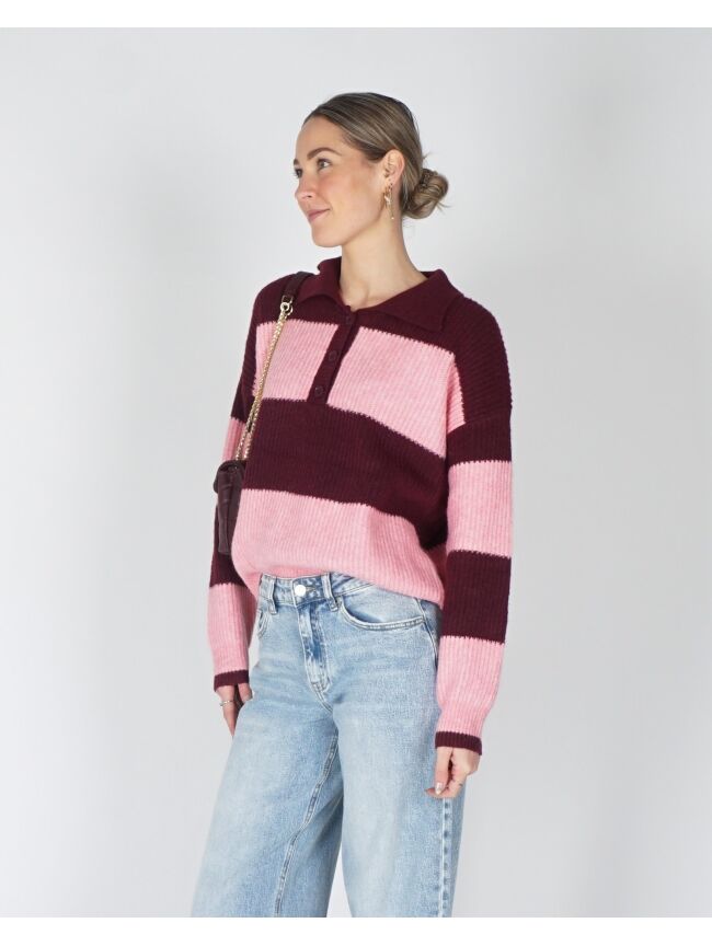 KNITTED POLO SANNE BORDEAUX/ROZE