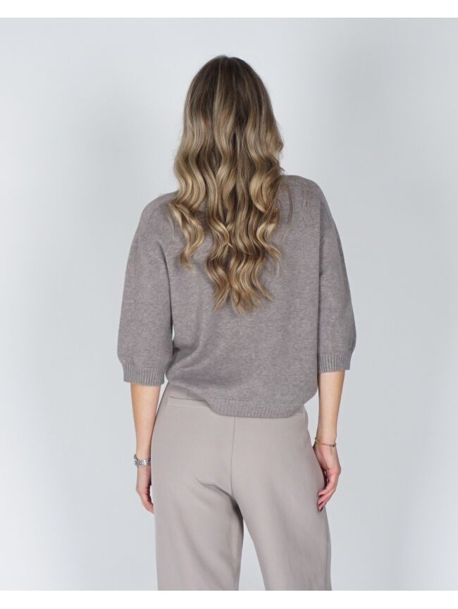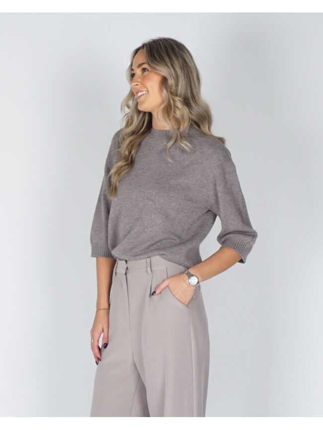 Deze taupe basic knit is een must-have voor iedere garderobe. Eenvoudig, tijdloos en comfortabel. Perfect om solo te dragen of te combineren met je favoriete jasjes en accessoires. Ideaal voor elke dag, van casual naar net wat aangekleed.