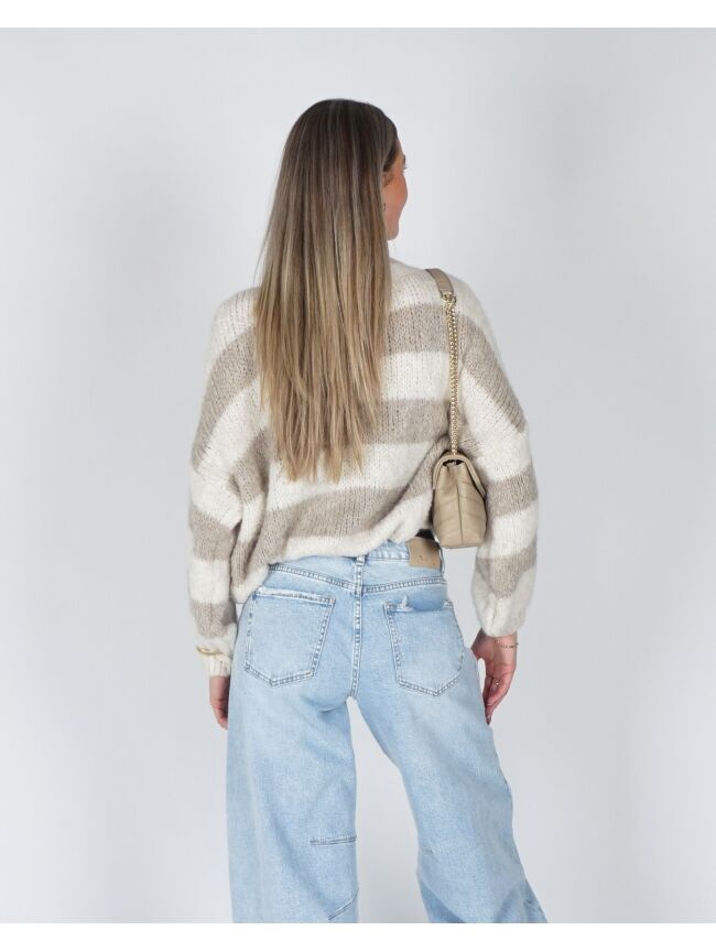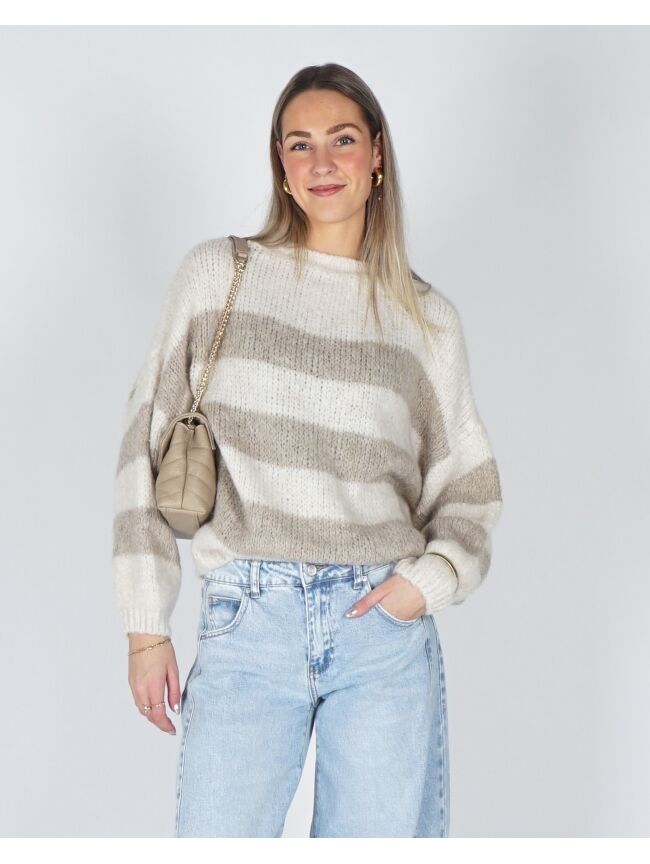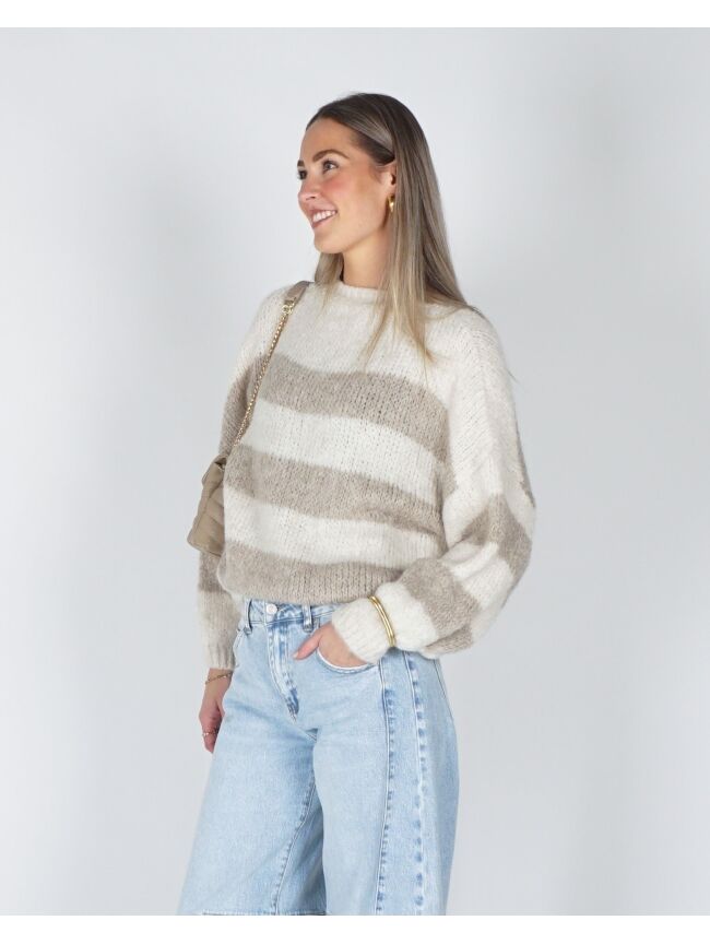 GESTREEPTE TRUI JODI ECRU/BEIGE