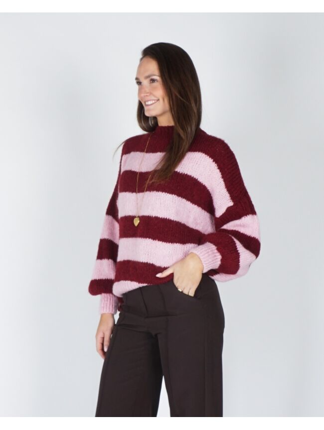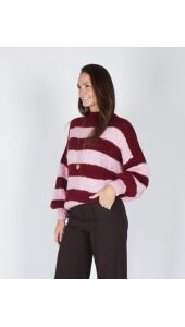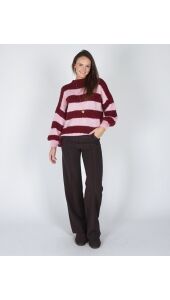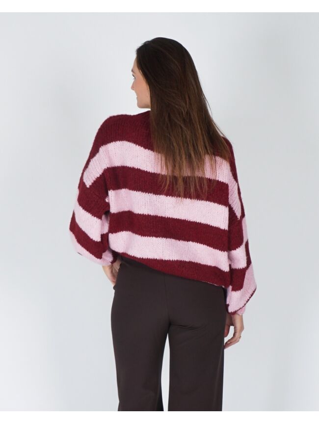 GESTREEPTE TRUI JODI BORDEAUX/ROZE