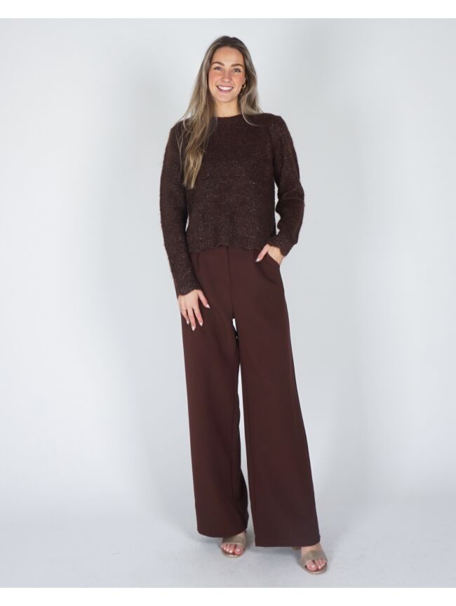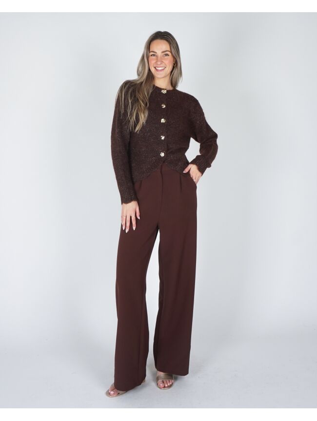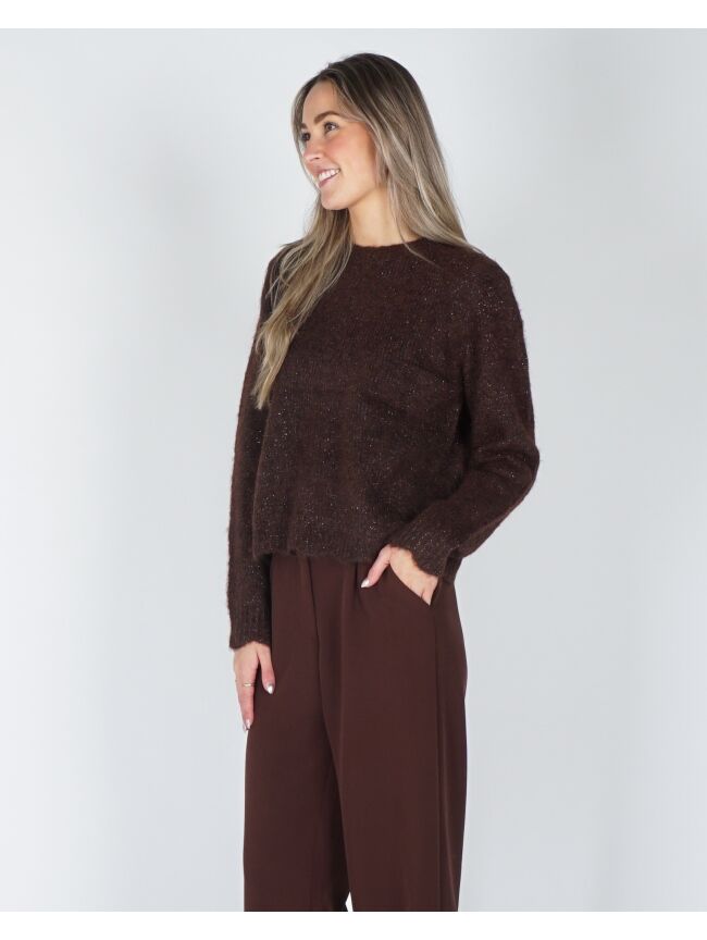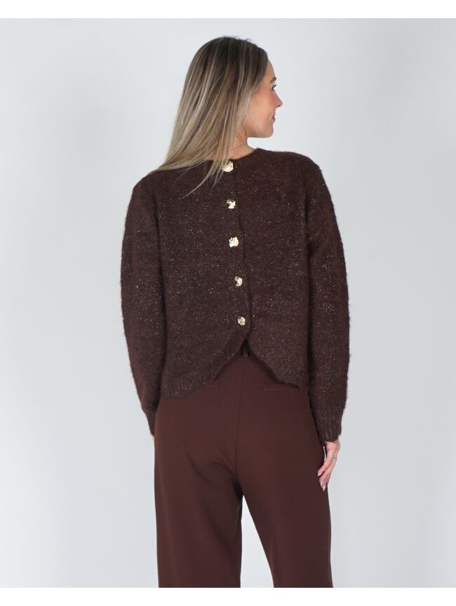 Deze trui kan je op 2 verschillende manieren dragen. Met de knopen aan de achterkant maar ook met de knopen aan de voorkant! In de trui zit een subtiele lurex wat de trui extra leuk maakt. Combineer de trui met je favoriete sieraden en je bent ready to go!