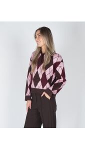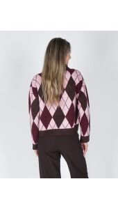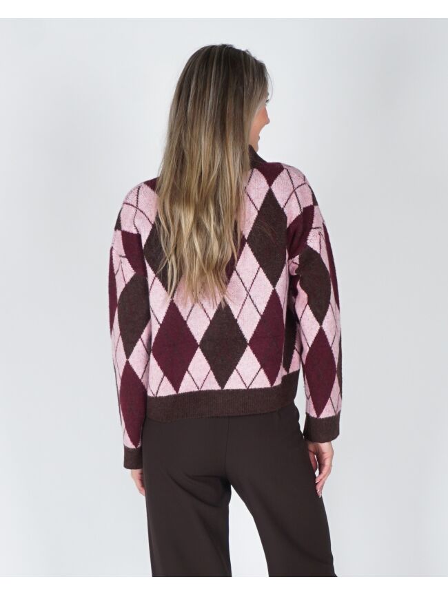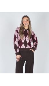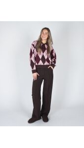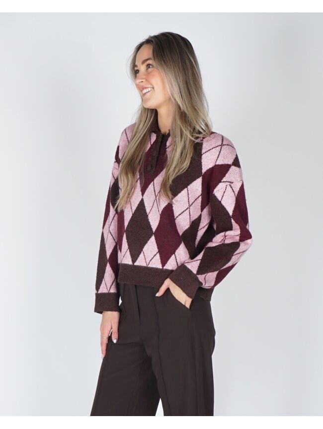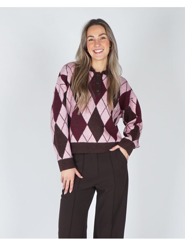 Helemaal on trend met deze polo knit! De trui is mega zacht, heeft knoopjes en een gaaf geruit roze, chocolade bruin motief. Combineer met een bruine pantalon en je bent ready to go.