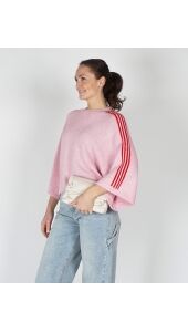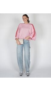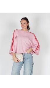 Deze stijlvolle, designer inspired beige trui is de perfecte mix van comfort en subtiele details. Het losvallende model zorgt voor een relaxte, flatterende fit, terwijl de wijde halflange mouwen een moderne en elegante uitstraling geven. De contrasterende strepen langs de mouwen voegen een sportieve touch toe en maken deze trui net even anders.