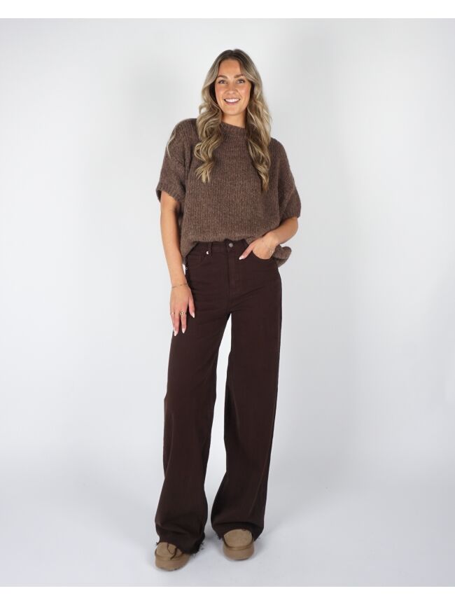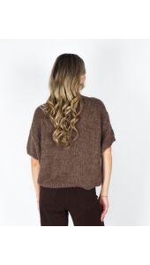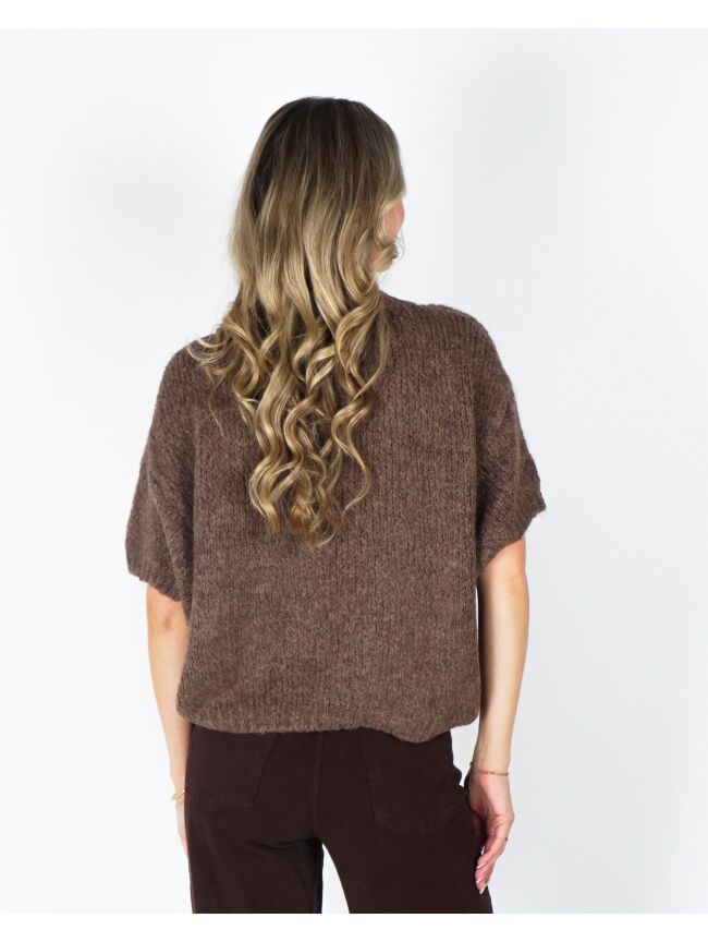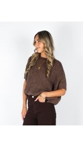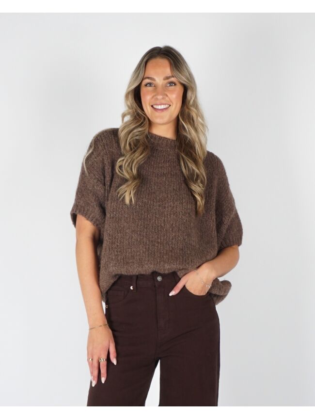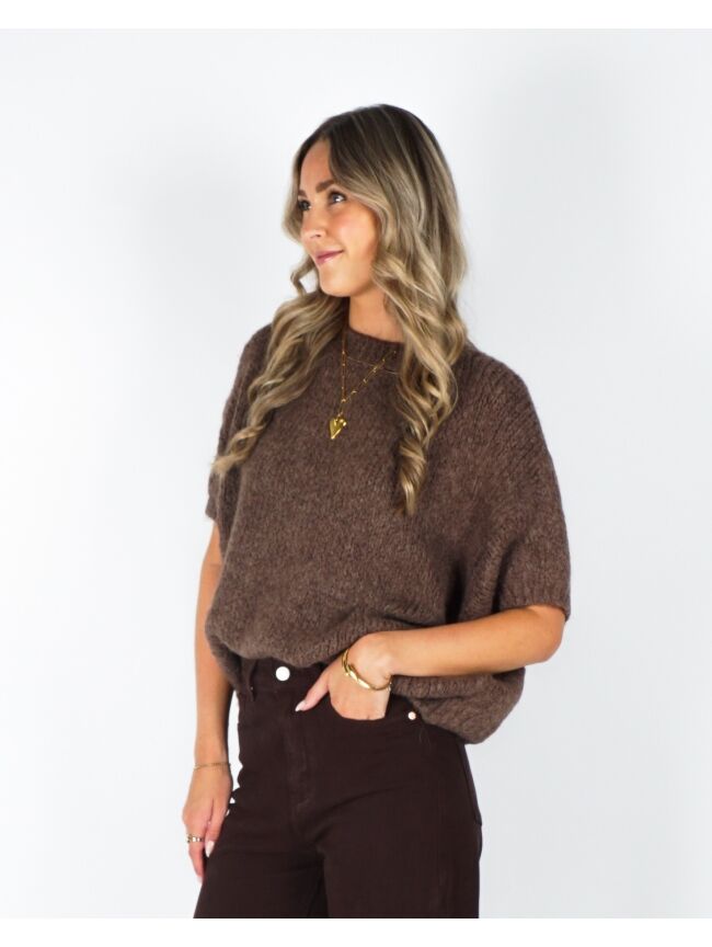 Deze bruine trui met korte mouwen is een echte essential voor je garderobe. Gemaakt van een heerlijk zachte stof die comfortabel aanvoelt op de huid, perfect voor de overgang van seizoen. De neutrale kleur maakt 'm makkelijk te combineren, terwijl de korte mouwen zorgen voor een casual en moderne uitstraling. Stijlvol én comfy.