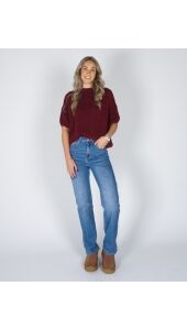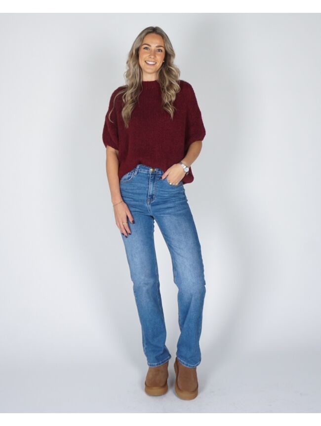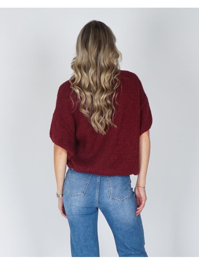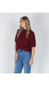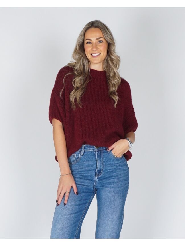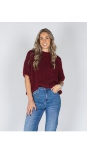 Deze bordeaux trui met korte mouwen is een echte essential voor je garderobe. Gemaakt van een heerlijk zachte stof die comfortabel aanvoelt op de huid, perfect voor de overgang van seizoen. De neutrale kleur maakt 'm makkelijk te combineren, terwijl de korte mouwen zorgen voor een casual en moderne uitstraling. Stijlvol én comfy.