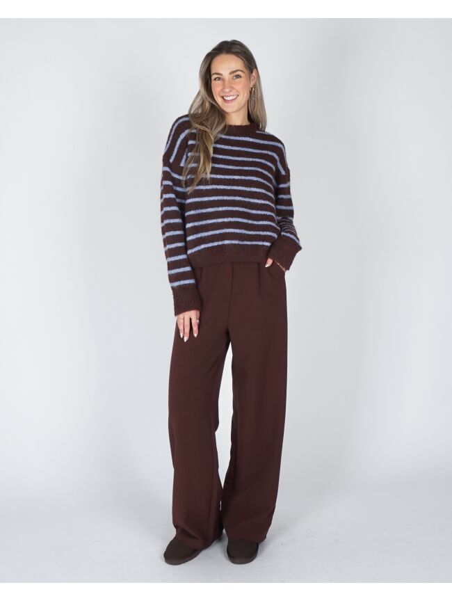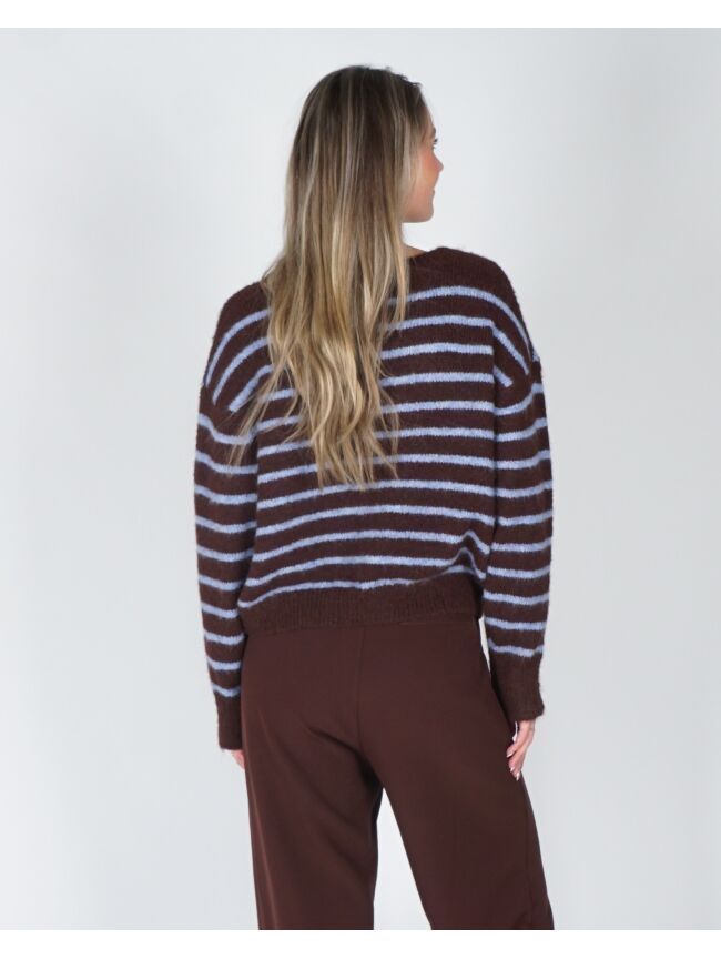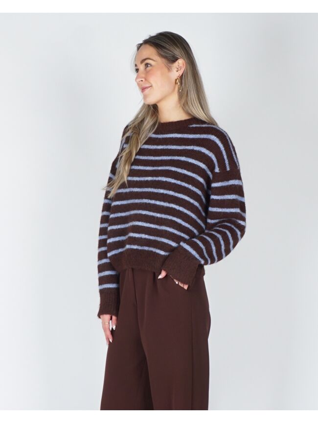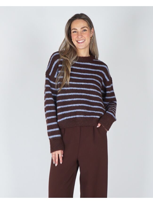GESTREEPTE TRUI SANNE BRUIN/BLAUW