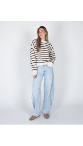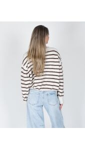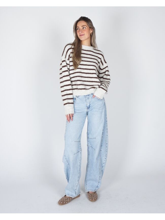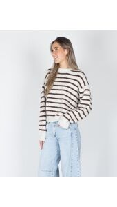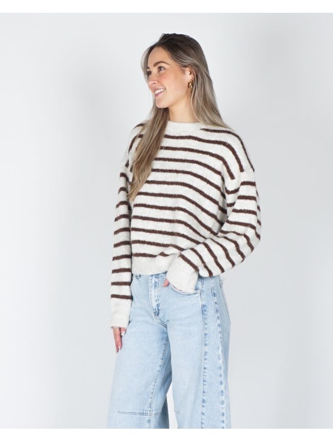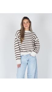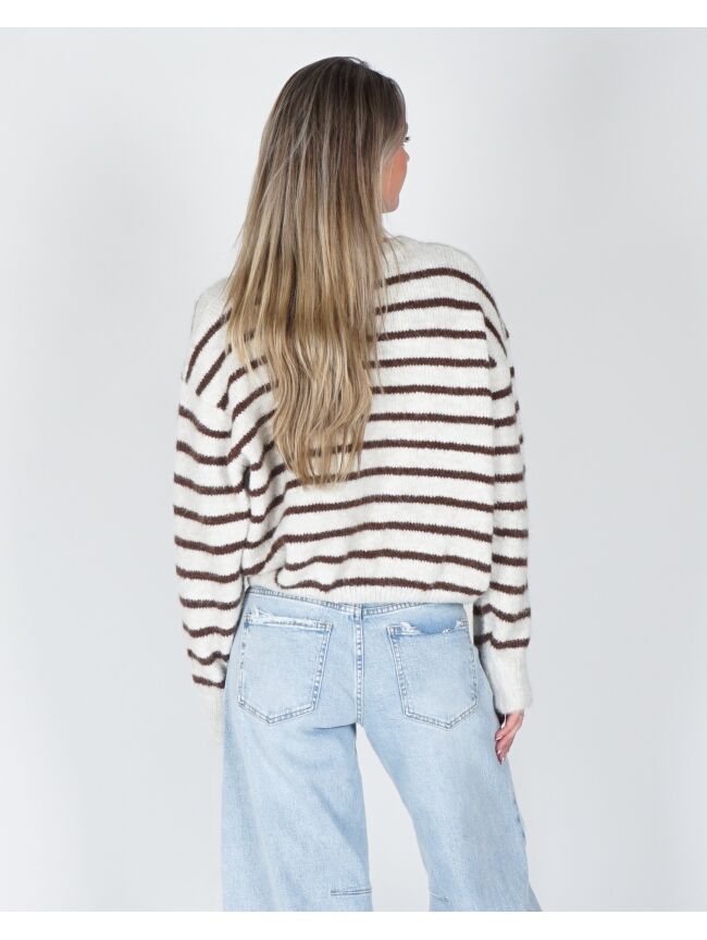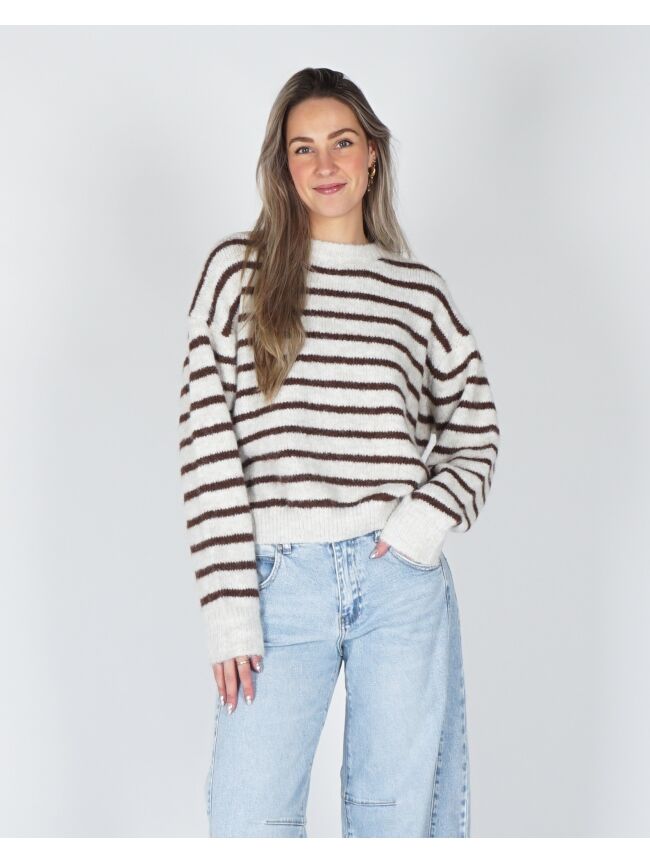 GESTREEPTE TRUI SANNE ECRU/BRUIN