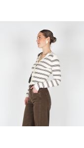 GEBREID VESTJE MET STREPEN ECRU/BRUIN
