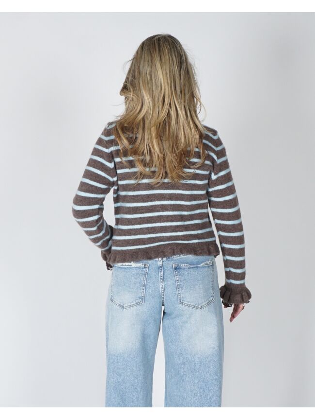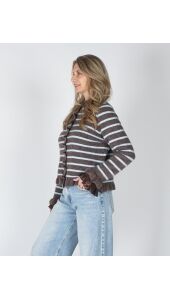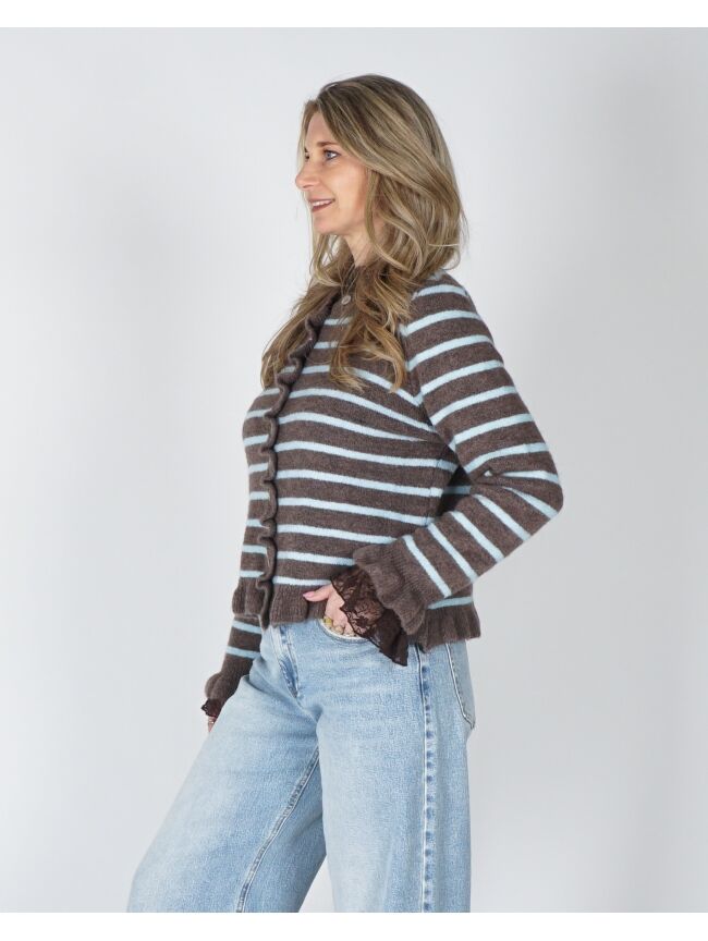GESTREEPT VESTJE MET RUFFLE BRUIN/BLAUW
