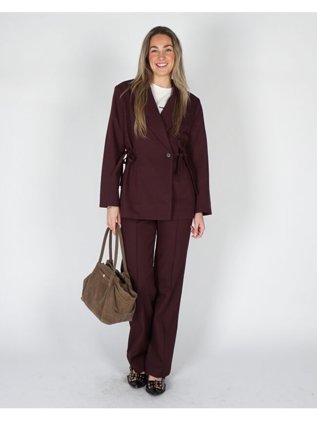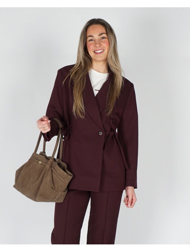 De anina blazer in Winetasting is gemaakt van een soepele stof en heeft een verfijnde, vrouwelijke pasvorm. De diepe bordeauxrode kleur geeft dit item een luxe en krachtige uitstraling. Perfect om te dragen als onderdeel van een set of om een eenvoudige outfit extra body te geven.
