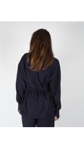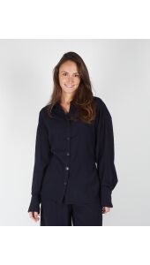 De HELENA BLOUSE in night blue is gemaakt van een subtiel glanzende stof die soepel valt. De donkere tint geeft de blouse een chique diepte, terwijl de luchtige pasvorm zorgt voor draagcomfort. Draag haar nonchalant open over een top of elegant gesloten in een high-waist broek. Een blouse die moeiteloos stijl ademt.