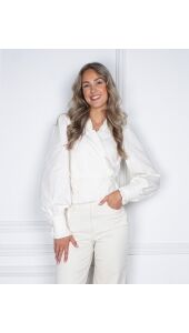 Simplicity meets softness. De COBY blouse in ecru is een tijdloos item met een subtiele textuur. Gemaakt van een luchtige stof met een rechte fit, lange mouwen en een klassieke kraag. Afgewerkt met ruches en een strik detail. De zachte ecru kleur maakt deze blouse ideaal voor het najaar, of je ‘m nu draagt op een pantalon of open over een top. A wardrobe classic with endless styling options.
