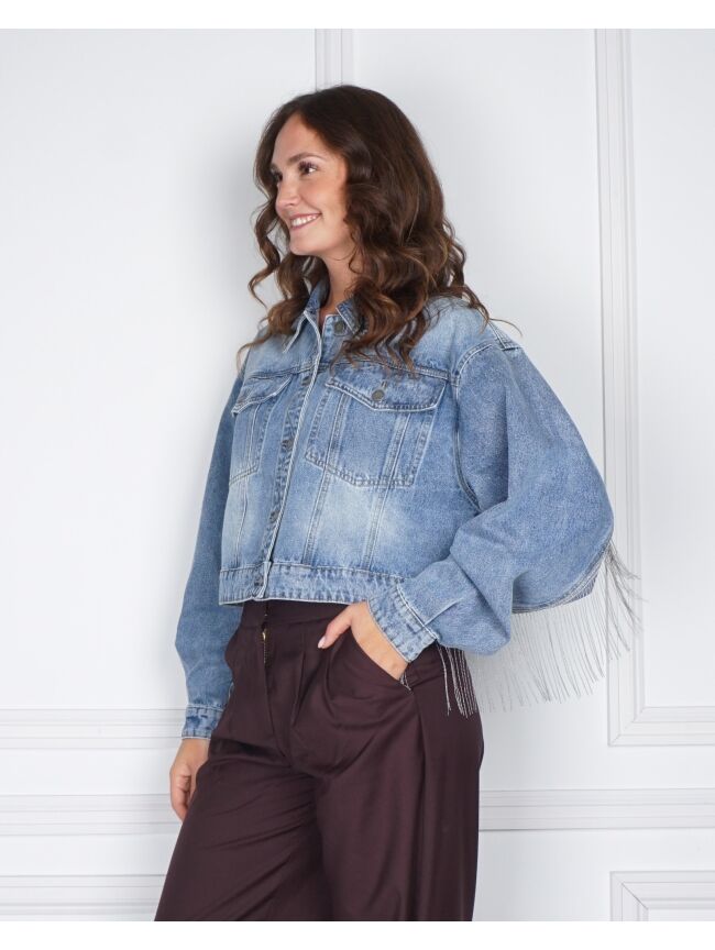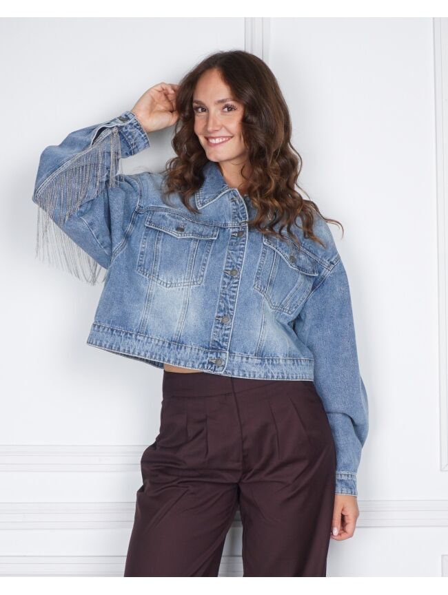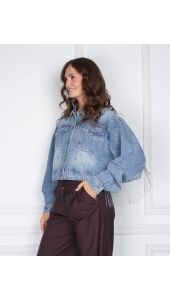 Soft blue, strong look. De MILLOW jacket in LIGHT BLUE is een casual, maar verfijnde jack met een stoere uitstraling. De boxy fit, knoopsluiting en borstzakken zorgen voor structuur, terwijl de zachte kleur het item vrouwelijk en fris houdt. Perfect te combineren met neutrale of denim tinten. De zilveren franges maken de look nog origineler.