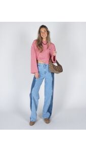 WIDE LEG JEANS YVE BLAUW/ LICHTBLAUW