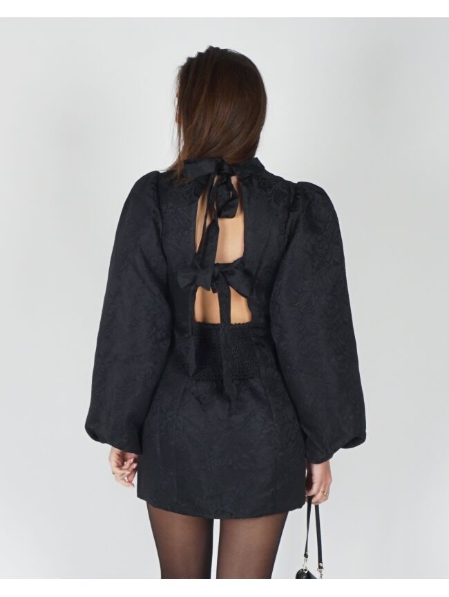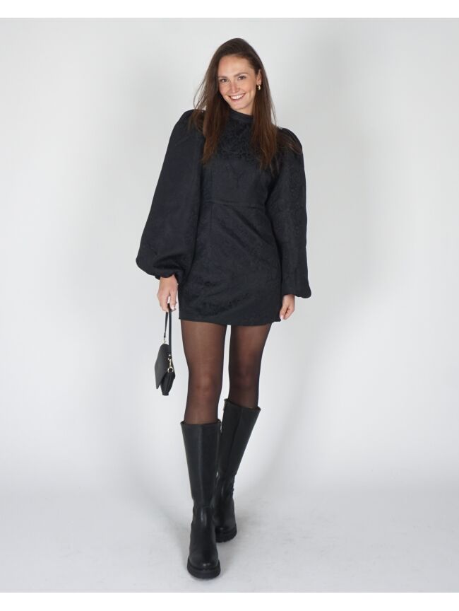 De Larissa jurk is een tijdloze, elegante jurk die je bij elke gelegenheid laat stralen. De zwarte kleur en de soepelvallende polyester stof zorgen voor een chique uitstraling. De pofmouwen geven de jurk een vrouwelijke touch, terwijl de open rug met strikkoord zorgt voor een subtiel spicy effect. Perfect voor zowel een dagelijkse look als een avondje uit.