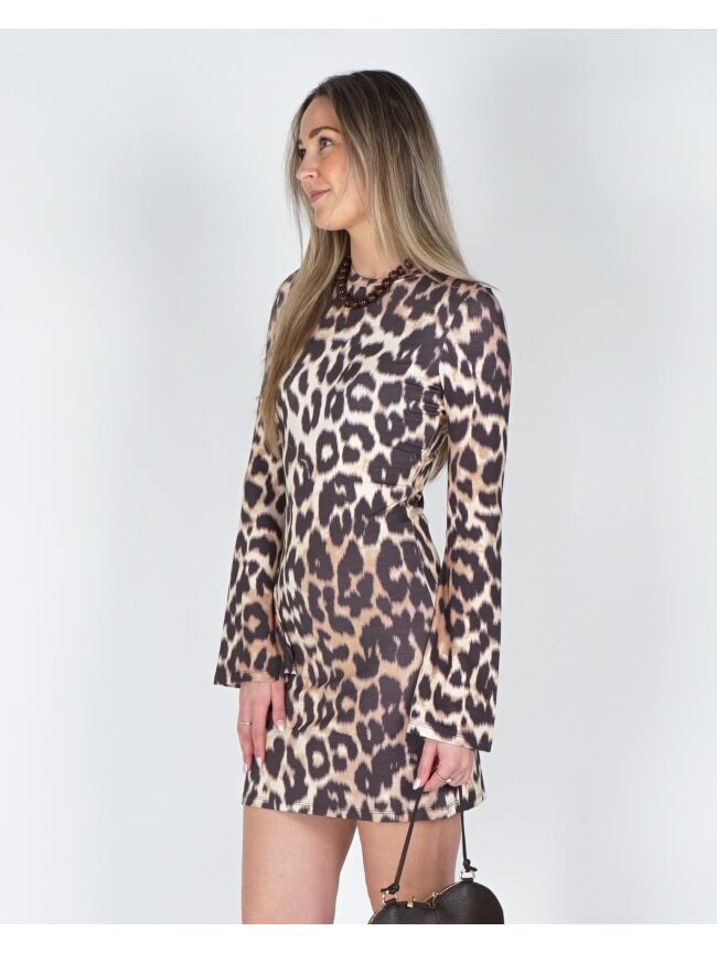 Dit leopard jurkje is een echte eyecatcher met een trendy en vrouwelijke uitstraling. De aansluitende pasvorm en lange mouwen zorgen voor een elegante en flatterende look. Perfect voor zowel een casual dag als een avondje uit.