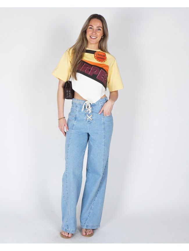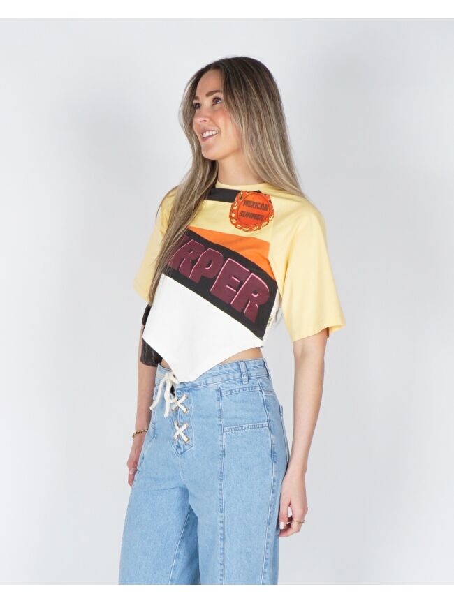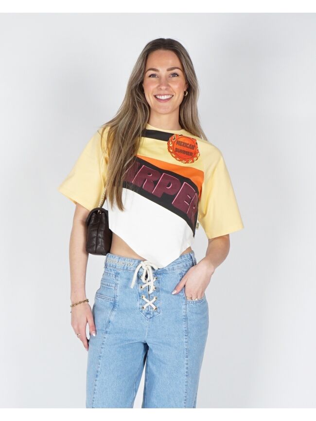 Dit opvallende shirt van Harper & Yve geeft jouw outfit direct een speelse en trendy uitstraling dankzij de kleurrijke print en unieke snit. De losvallende pasvorm en zachte stof zorgen voor optimaal comfort, perfect voor een casual maar stijlvolle look. Combineer het shirt met een jeans of short voor een effortless fashion statement.