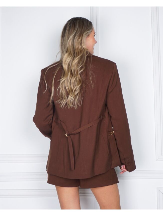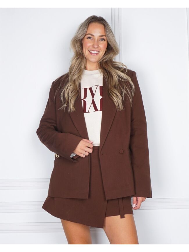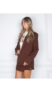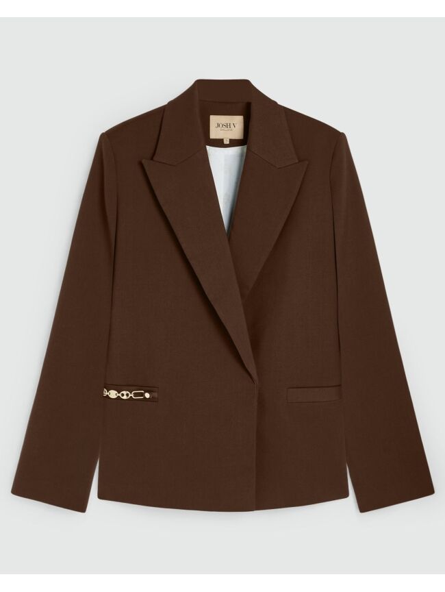 De JOSH V Deacon blazer in donkerbruin heeft een ruime pasvorm en schoudervullingen voor een stoere look. Bijzondere details zoals een afneembare ketting, een ceintuur met haakjes en een voering met logo maken deze blazer extra speciaal. Draag hem los voor een relaxte outfit, of met de ceintuur voor een mooie, getailleerde vorm.