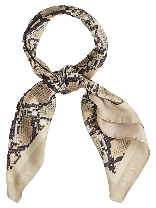 De JOSH V Desie damessjaal in de print Snake is gemaakt van 100% polyester chiffon. Het vierkante sjaaltje is uitgevoerd in een slangenprint en heeft een formaat van 60 x 60 cm. Het slangenprint sjaaltje draag je perfect om de hals, als haaraccessoire of als accessoire aan je tas. Een veelzijdige must-have voor elk seizoen.