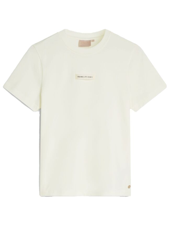 Musthave! Op zoek naar de perfecte basic? Het JOSH V Dorie dames T-shirt in de kleur Off White is een tijdloze essential die niet mag ontbreken in je garderobe. Dit regular fit T-shirt is gemaakt van zacht katoen en heeft een subtiel JOSH V-logo op de voorkant. Styletip: Combineer het T-shirt met een jeans en sneakers voor een casual chique office look.