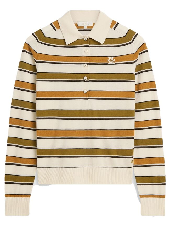 De JOSH V Audrey dames longsleeve top is gemaakt van een prachtige kwaliteit met gerecycled polyester en wol. De polo met lange mouwen is verrijkt met een streepjesprint en heeft een fitted pasvorm. Het subtiele geborduurde monogram logo op de borst maakt de top uniek. De JOSH V Audrey longsleeve combineer je perfect met denim of de donkergroene items uit de JOSH V collectie.