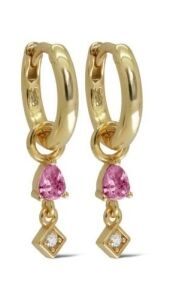 Maak je outfit helemaal af met de hinged hoops Cleo. Dit is een klapcreool met een hanger en roze zirconia steentjes. De oorbel zit comfortabel om de oorlel heen en kan je makkelijk openen en sluiten.