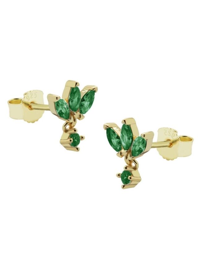 Elegante oorbellen met drie bloemblaadjes versierd met fonkelende groene zirconia's. Gemaakt van hoogwaardig materiaal, stralen deze oorbellen verfijning en klasse uit. Ideaal voor elke gelegenheid