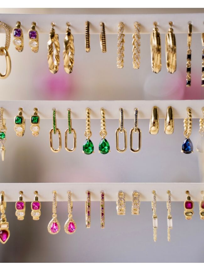 14k vergulde gouden hoops met zirkonia. De oorbellen gaan per paar.