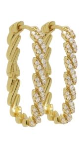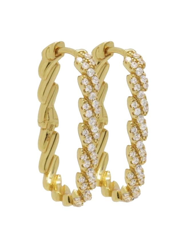 14k vergulde gouden hoops met zirkonia. De oorbellen gaan per paar.