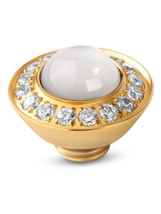 Het Melano Vivid Glam steentje heeft een hart van Mother of Pearl en is omringd door verfijnde kristalkleurige zirkonia steentjes. Deze schoonheid geeft een frisse, zomerse touch aan elk sieraad! Het Glam steentje is 10 mm breed