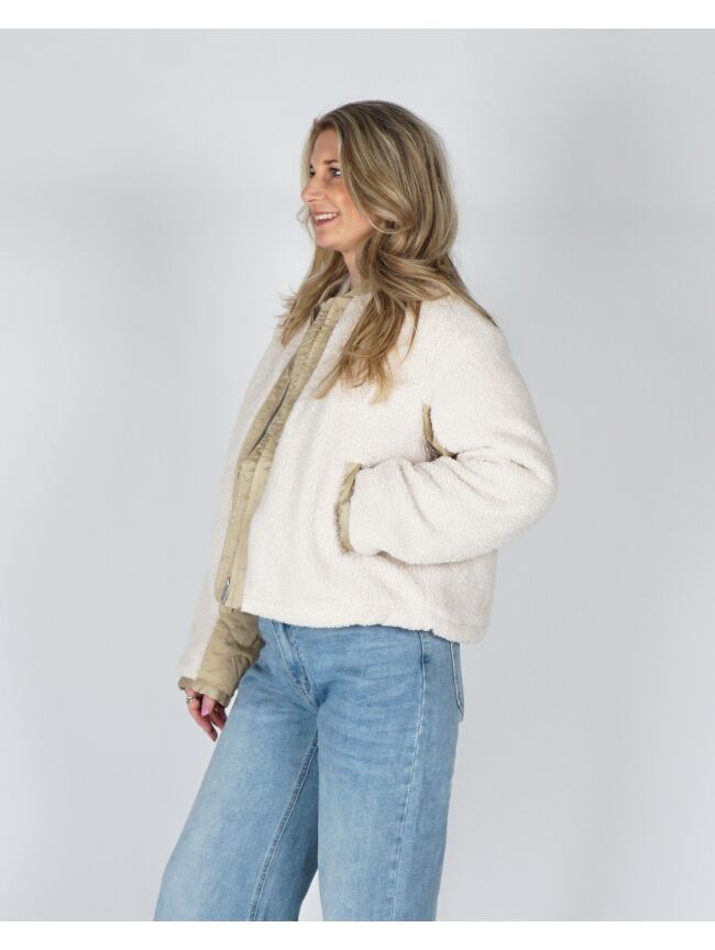 Het Teddy Jacket Latha heeft een rustige, eigentijdse uitstraling. De zachte teddy stof voelt warm en comfortabel aan en het model draagt makkelijk. Ideaal voor frisse dagen en eenvoudig te combineren met verschillende outfits. Een tijdloos jacket dat je er zo bij pakt.