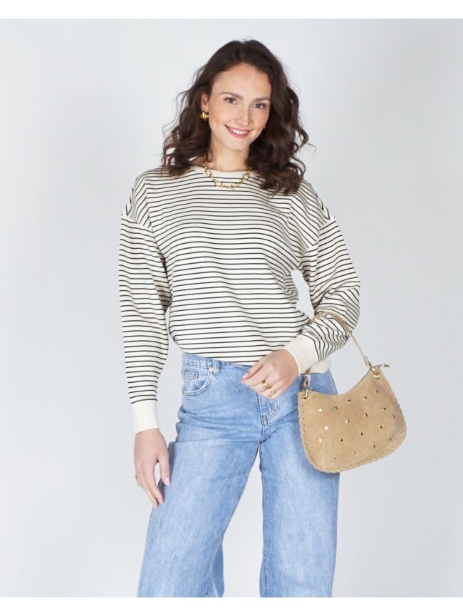 GESTREEPTE SWEATER IMA ECRU ZWART