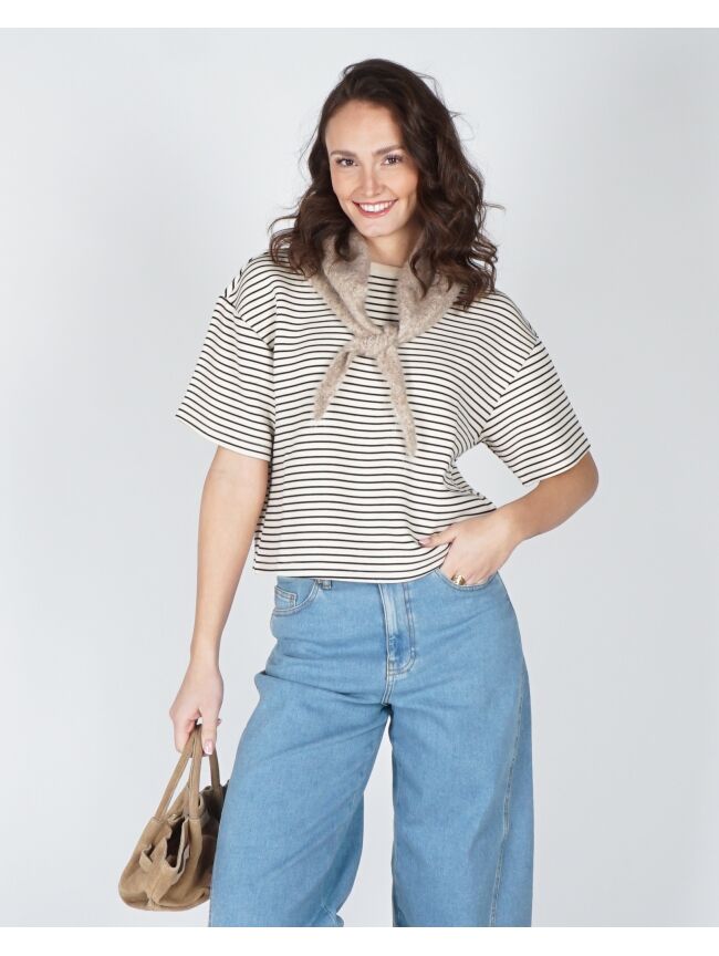 KORTE MOUWEN SWEATSHIRT ECRU ZWART NILDA IMA