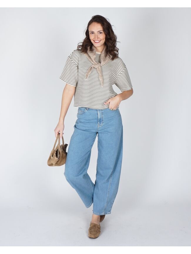 Een tijdloze klassieker met een moderne twist. De Nilda Sweatshirt heeft een zachte haverkleurige en zwarte streep, verlaagde schouders en een relaxed silhouet – ontworpen voor alledaags comfort en moeiteloze styling. Draag hem met een spijkerbroek, over een jurk of combineer hem met bijpassende loungewear voor een coole, casual look.
