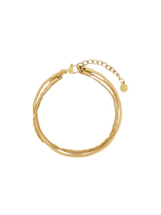 Wij zijn helemaal verliefd op deze mooie armband! Deze schakelarmband vult meteen je pols op door de driedubbele lagen en door het minimalistische karakter is deze makkelijk te stylen met iedere outfit. Maak een classy bracelet party die je outfit omtovert tot een om in te shinen!